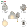 Бра с выключателем Rivoli Valerie – удачное решение для дополнительной подсветки площади до 3 м2. Плафон бра изготовлен из белого матового стекла и имеет традиционную форму. Настенные светильники-бра Valerie удачно смотрятся в интерьерах стилей кантри, классика, ретро, барокко, модерн. Круглое основание, верёвочный выключатель-сонетка формируют уютный спокойный дизайн этого светильника-бра классического. |