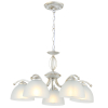 Подвесная потолочная люстра Rivoli Valerie (арт. 9169-305) с пятью матовыми стеклянными плафонами, декоративной цепочкой подвеса и дизайнерскими элементами классического стиля. Коллекцию итальянского бренда дополняет люстра под 3 лампы - арт. 9169-303, бра – арт. 9169-401, настольный светильник – арт. 7169-501. Отличительная особенность коллекции Rivoli Valerie – красивое окрашивание корпуса в белый цвет с эффектом декоративного состаривания.