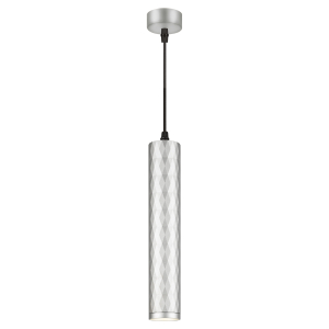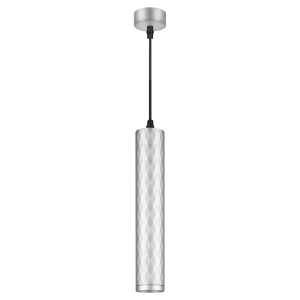Описание: Подвесной светильник PL15 SL выполнен в фактурном рисунке "ромб". Притягивает и завораживает, создает новые грани красоты и изысканности. Корпус выполнен из металла, рисунок нанесен станком ЧПУ и покрыт устойчивой порошковой краской, которая после нанесения запекается в печи при температуре 210°С. Светильник предназначен под лампу MR-16 с цоколем GU10, напряжение питания ~230В 50/60Гц, материал металл, цвет светильника серебро, размер D55хH300мм, длина провода 1200 мм, максимальная мощность лампы 12Вт, степень защиты IP20