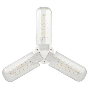 Рекомендованная высота от лампы до листьев от 15 до 75 см. Прозрачный рассеиватель и белый глянцевый корпус лампы позволили ее сделать максимально энергоэффективной. Лампа клевер ЭРА FITO-24W-RB-E27-FOLD на первый взгляд кажется странной и непривычной, но в лепестковой лампе за счет распределения печатных плат на большой площади проблема с отводом тепла с диодов решается намного легче и дешевле, чем в радиаторных лампах. |