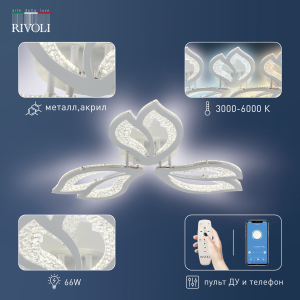 Описание: Этот потолочный светодиодный светильник Rivoli Claudia мощностью 66 Вт освещает помещения площадью до 17 м². Регулируемая цветовая температура от 2700 до 6000 К позволяет создать нужную атмосферу, а режим ночника обеспечивает мягкий свет для ночного времени. Светильник изготовлен из акрила, что делает его стильным и долговечным. Светодиоды нового поколения гарантируют безопасность для глаз. В комплект входят все необходимые элементы для установки, а универсальное крепление подходит для любых типов потолков. Батарейки для пульта не входят в комплект.