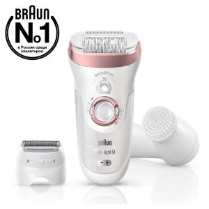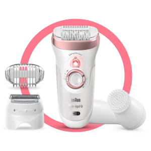 Эпилятор Braun Silk-épil 9 9-855, сухая и влажная эпиляция, щёточка для лица, белый/розовый