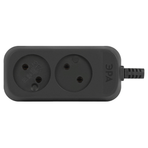 Описание: Колодка ЭРА KX-2-B на 2 розетки, без заземления, черная. Максимальная мощность - 10 А/2200 Вт. Для кабеля до 2х1мм2