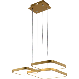 Описание: Подвесной светодиодный светильник Rivoli Clara (арт. 6125-103) в эффектном золотом цвете. Мощность — 100 Вт. Качественные яркие светодиодны встроены в три плафона квадратной формы. Пульт управления поставляется в комплекте. Он позволяет дистанционно включать и выключать LED-свельник подвесной, регулировать яркость и выбирать температуру освещения: холодный, тёплый или нейтральный белый свет. Светодиодные потолочные светильники на тросах — одно из самых популярных решений при организации освещения современных пространств. Такие LED-люстры на подвесах встречаются в большинстве проектов профессиональных дизайнеров интерьеров. В этой потолочной подвесной люстре на пульте управления соединились функциональность и красота. В каталоге итальянского бренда Rivoli представлена аналогичная модель с круглыми светодиодными плафонами — арт. 6125-101.