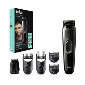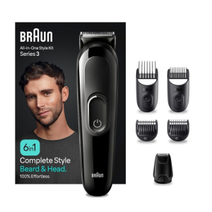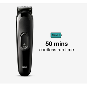 Описание товара: Аккумуляторный универсальный триммер для бороды, усов и волос Braun MGK3410 - это настоящая находка для мужчин. Он представляет собой устройство 6 в 1 и является не только триммером, но и машинкой для стрижки волос. Он позволяет подкорректировать форму бороды и усов, сменить прическу, а также избавиться от волос в носу и ушах. Триммер рассчитан на 50 минут автономной работы после полной 10-часовой зарядки. Он оснащен острыми лезвиями из нержавеющей стали, которые не требуют заточки, и предлагает 13 настроек длины. В комплекте идут: гребень для короткой и средней бороды 3-11 мм, гребень 13-21 мм, гребни 1 и 2 мм, насадка для точного бритья, а также щёточка для чистки прибора. Триммер подходит для ежедневного использования и может очищаться под проточной водой. Особенности модели: ー Универсальность. Набор 6 в 1 для стрижки волос на лице, голове и удаления волос из носа и ушей. ー Острые лезвия с неограниченным сроком службы даже легко срезают длинные и толстые волоски. ー Триммер идет в наборе с 4 гребнями и Насадкой для точного бритья. ー 100% водонепроницаемый. Для лёгкой очистки под проточной водой. ー NiMh аккумулятор обеспечивает 50 минут работы и требует 10 часов зарядки.