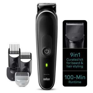 Набор Style 9-в-1 от Braun для ухода за волосами с головы до пят: тщательно подобранные инструменты для стрижки бороды, ушей и носа, а также стрижки волос в домашних условиях.