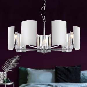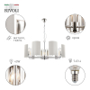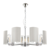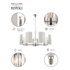 Люстры потолочные подвесные Rivoli Asura отличаются лаконичностью форм арматуры. Подвес наполовину состоит из цепочки, убирая звенья которой, можно регулировать высоту люстры. Прямоугольные плафоны обтянуты специальной тканью, устойчивой к выцветанию и загрязнениям. Лампы расположены по кругу, что даёт помещению много света. |