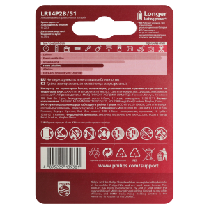 Описание: Алкалиновая (щелочная) батарейка типа LR14 / "С" / MN1400 Питает все устройства с высоким энергопотреблением. Современные электронные устройства требуют все больше энергии. Чтобы они работали дольше, используйте щелочные батареи Philips Power Alkaline. Наилучшие характеристики • Сохраняет заряд до 10 лет • Щелочная технология отлично подходит для устройств с высоким энергопотреблением • Благодаря наличию разных моделей вы можете использовать эти батарейки их для любых нужд Удобство использования • Цветная маркировка облегчает определение размеров батарей • Понятные схематические инструкции по эксплуатации Не наносит вреда окружающей среде • Щелочные батареи Philips содержат 0 % кадмия, ртути и свинца Характеристики Питание • Тип элемента питания: Тип С / щелочная LR14 • Напряжение батареи: 1,5 В Экохарактеристики • Химический состав: Щелочная • Тяжелые металлы: Не содержит кадмия, Не содержит ртути, Не содержит свинца • Упаковочный материал: Картон, ПЭТ • Тип упаковки: Блистер ПЭТ Технические характеристики • Срок хранения: 10 лет • Взаимозаменяема с: С, LR14, R14, 343, MN1400 Особенности Щелочная технология Щелочная технология обеспечивает питание устройств с высоким энергопотреблением. Не содержит кадмий, ртуть и свинец Эти батареи Philips гарантированно не содержат вредных тяжелых металлов, таких как кадмий, ртуть и свинец. Схематические пояснения Универсальные схемы на упаковке объясняют, как и где батарея может или должна быть использована. Универсальность Для удовлетворения потребностей потребителя Philips предлагает комплексный портфель наиболее часто используемых батарей (AA, AAA, C, D, 9 В) в различных вариантах упаковки. Простая цветная маркировка Для упрощения определения наиболее распространенных размеров батарей используется цветовая маркировка в соответствии с отраслевыми стандартами. Сохраняет заряд до 10 лет Любая батарея разряжается, когда она не используется. Мы гарантируем, что эта батарея содержит, по крайней ме