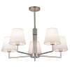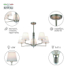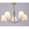 5-рожковая классическая люстра на штанге. Основание люстры декорировано прозрачной стеклянной колбой. Освещаемая площадь данной потолочной люстры – до 15 м2. Rivoli Freda – коллекция в классическом стиле, в которую входит люстра под 5 ламп (арт. 2089-305) и настенное бра под 1 лампу (арт. 2089-401). Металлические рожки коллекции имеют чёткие линии, плафоны-абажуры обтянуты тканью матового белого цвета. Цвет арматуры – серебристый. Стойкое гальваническое покрытие сохраняет красоту оттенка на долгие годы.