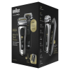 Описание: Электробритва Braun Series 9 Pro 9577cc — это наша самая совершенная бритва на сегодняшний день с инновационной бритвенной головкой с 5 бреющими элементами и триммером ProLift, которые справляются с щетиной любой густоты и длины — 1-дневной, 3-дневной или даже 7-дневной. Уникальная технология SyncroSonic обеспечивает захват большего количества волос за счёт 10 000 микровибраций, значительно улучшая производительность бритья. Модель имеет LED-дисплей и поддерживает быструю зарядку. Первый в мире портативный зарядный чехол PowerCase со встроенным литий-ионным аккумулятором (Li-Ion) увеличивает время работы бритвы на 50% и обеспечивает до 6 недель бритья без необходимости проводной зарядки. Также в комплекте станция очистки и подзарядки SmartCare – 5-уровневая станция Clean&Charge удаляет 99,9% микробов одним нажатием кнопки. Кроме того, она автоматически смазывает, сушит и заряжает вашу бритву. 1 час зарядки обеспечивает Вам до 60 минут беспроводного бритья. Быстрой 5-минутной зарядки достаточно для 1 сеанса беспроводного бритья. Особенности электрической бритвы Braun Series 9 Pro 9577cc : • ТОЧНЫЙ РЕЗУЛЬТАТ. Переключатель точного режима фиксирует бритвенную головку и позволяет с лёгкостью захватывать труднодоступные волоски. • 100% ВОДОНЕПРОНИЦАЕМАЯ. Водонепроницаемый корпус и нескользящая ручка позволяют использовать бритву с пеной или гелем, а также использовать бритву в душе. • ИНТЕЛЛЕКТУАЛЬНАЯ ТЕХНОЛОГИЯ AUTOSENSE. Густая щетина — это не проблема: инновационный мотор считывает плотность вашей щетины и адаптирует мощность бритвы 13 раз в секунду технология, гарантируя гладкость. • 10-D ПЛАВАЮЩАЯ БРЕЮЩАЯ СИСТЕМА. Элементы бритвенной системы имеют независимую подвеску и установлены на вращающейся в 10 направлениях бритвенной головке. • ТЕХНОЛОГИИ MICROMOTION И MACROMOTION. Обеспечивают максимальную адаптацию и близкий контакт с кожей для более тщательного бритья.