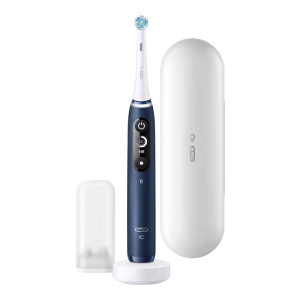 Описание: Электрическая зубная щетка Oral-B iO 7 Navy Blue создана для ежедневного ухода за полостью рта. Искусственный интеллект распознает и анализирует стиль чистки зубов и дает рекомендации по более эффективной гигиене. Уникальная круглая насадка проникает в межзубные промежутки и бережно очищает эмаль со всех сторон зуба. Головка насадки совершает 10 500 возвратно-вращательных движений в минуту. Благодаря мягким микровибрациям, электрическая щетка Oral-B iO 7 эффективно размягчает и вычищает зубной налет. Особенности Oral-B iO 7: • ИНТЕРАКТИВНЫЙ черно-белый ДИСПЛЕЙ для максимального удобства; • УМНЫЙ ДАТЧИК ДАВЛЕНИЯ — для понимания уровня чрезмерного и оптимального давления; • станция магнитной зарядки с фиксацией — ЗАРЯЖАЕТ щетку ЗА ТРИ ЧАСА; • двухминутный ТАЙМЕР с контролем смены зон чистки каждые 30 секунд; • ПЯТЬ РЕЖИМОВ чистки, насадка Ultimate Clean в комплекте. Электрическая зубная щетка Oral-B iO 8 совместима с мобильными устройствами на базе Android, iOS. Подходит для ухода за чувствительными зубами и деснами. Устройство комплектуется дорожным футляром, держателем для насадок и магнитной зарядной станцией. Выбирайте Oral-B — это марка зубных щеток № 1, используемая большинством стоматологов мира. **На основании международных опросов P&G, проводимых среди репрезентативной выборки стоматологов регулярно, в т. ч. в 2013-2019 гг.