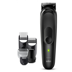 Аккумуляторный универсальный триммер для бороды, усов и волос Braun MGK7470 - это настоящая находка для мужчин. Это устройство 16 в 1, которое является не только триммером, но и машинкой для стрижки волос. С его помощью можно сделать четкие контуры бороды и усов, а также поэкспериментировать с прической. Он оснащен технологией AutoSense, которая способна адаптировать мощность мотора в зависимости от густоты волос. Этот триммер 16 в 1 имеет 13 настроек длины и позволяет придать форму бороде, подстричь волосы, создать идеальные линии и контуры и многое другое. В комплекте 13 насадок: гребень для короткой и средней бородой 3-11 мм, гребень для длинных волос 13-21 мм, гребни 1 и 2 мм, насадка-триммер для тела, гребень для чувствительных зон, триммер для носа и ушей, насадка для точного подравнивания, гребень для бровей, гребни для создания плавного перехода на бороде 1-5/5-1мм и 5-9/9-5 мм, а также бритва Gillette Fusion ProGlide для гладкого бритья, мягкий чехол и щёточка для очистки. Триммер оснащен литий-ионным аккумулятором, который обеспечивает 100 минут автономной работы, а на зарядку уходит всего 1 час. 100% водонепроницаемый - для лёгкой очистки под водой.