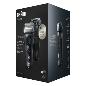 Описание: С электробритвой Braun Series 8 8563cc Вам не придётся выбирать между гладким бритьём и мягкостью кожи. Плавающая головка с 4 режущими элементами повторяет контуры лица, обеспечивая эффективность в каждом движении и бережное отношение к коже. Эта мужская бритва нового поколения подходит для сухого и влажного бритья. Инновационная технология SyncroSonic создает 10 000 микровибраций, которые позволяют бритве мягко скользить по коже, захватывая больше волосков. Расширенный LED-дисплей показывает уровень зарядки, состояние аккумулятора, сведения об очистке и состоянии сетки. Пятиступенчатая станция чистки и подзарядки SmartCare позволит всегда содержать бритву в чистоте одним нажатием кнопки. Кроме того, она автоматически смазывает, сушит и заряжает вашу бритву. 1 час зарядки обеспечивает Вам до 60 минут беспроводного бритья. Быстрой 5-минутной зарядки достаточно для 1 сеанса. Особенности электрической бритвы Braun Series 8: • АДАПТАЦИЯ ПОД КОНТУРЫ. Вращающаяся на 40° головка бритвы подстраивается под контуры лица, срезая волоски до 0,05 мм даже на сложных участках. • ТОЧНОЕ ПОДРАВНИВАНИЕ. Используйте встроенный выдвижной триммер для аккуратного подравнивания бороды, усов или бакенбард. Переключатель точного режима фиксирует головку бритвы для лучшего результата. • 8-D ПЛАВАЮЩАЯ БРЕЮЩАЯ СИСТЕМА. Головка бритвы вращается в 8 направлениях и справляется с самыми проблемными изгибами. • ТЕХНОЛОГИИ MICROMOTION И MACROMOTION. Обеспечивают максимальную адаптацию и близкий контакт с кожей для более тщательного бритья. • ТЕХНОЛОГИЯ PRECISION HEADLOCK. Позволяет блокировать головку бритвы для максимального контроля во время бритья сложных зон: под носом или подбородок. • 100% ВОДОНЕПРОНИЦАЕМАЯ. Водонепроницаемый корпус и нескользящая ручка позволяют использовать бритву с пеной или гелем, а также использовать бритву в душе. В комплект входят электробритва 8563cc, дорожный футляр, станция чистки и подзарядки SmartCare 5 в 1, зарядное устройство SmartPlug и щёточка для чистки