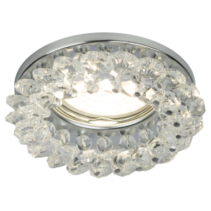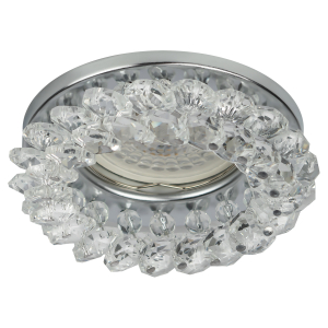 Описание: Встраиваемый светильник DK16 CH/WH круглый с мелкими хрусталиками станет эффектным решением для любого помещения: его можно разместить в спальне, в детской или на кухне. Светильник подходят как для базового освещения, так и для создания акцентов в определенных зонах комнаты. Благодаря скрытой части корпуса светильники можно встраивать в потолок или стены, создавая разный дизайн помещений. Встраиваемый светильник ЭРА с приятным дизайном подойдет для комнат с разным интерьером: от лофта до модерна, классицизма или минимализма. При помощи точечных светильников можно освещать только те участки помещения, которыми вы пользуетесь в данный момент, не затрачивая лишнюю элеткроэнергию. Максимальная мощность лампы составляет 50 Вт. Корпус встраиваемого светильника изготовлен из нержавеющей стали. Диаметр отверстия, требуемого для установки светильника составляет 65 миллиметров, а диаметр самого светильника – 90 миллиметров. Цоколь под лампу GU5.3 входит в комплект. Купив встраиваемый светильник бренда ЭРА, вы останетесь довольны и сможете создать уют в Вашем доме! Внимание: лампа не входит в комплектацию.