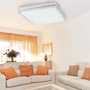 Необычная квадратная форма электросветильника, инкрустированная "бриллиантами", создает шикарный стиль. Люстра обогатит интерьер в спальне, коридоре, а также гостиной. Плавные переливы декора будут дарить праздничное настроение.