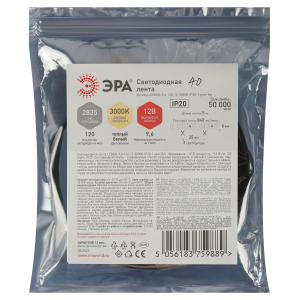 Светодиодная лента ЭРА LS2835 -120LED-IP20-WW со степенью защиты от пыли и влаги IP20 - современный способ создания внутреннего освещения, подсветки ниш, лестничного пространства, систем хранения, а также декоративного и художественного оформления любых объектов и форм в помещениях. Легко и быстро устанавливается на любой гладкой поверхности с помощью скотча, расположенного на оборотной стороне лентыю Используя алюминиевый профиль, можно создавать необычные и функциональные решения освещения в Вашем интерьере. Рабочее напряжение ленты составляет 12В, а мощность равна 9,6 Вт/м. Светодиодная лента обладает световым потоком 840 Лм/м, и цветом свечения - теплый белый (2700 K)