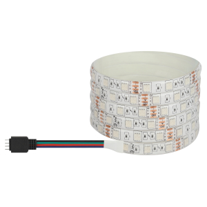 Светодиодная лента LS5050-14,4-60-12-RGB-IP65-1 year-5m со степенью защиты от пыли и влаги IP65 - современный способ создания внутреннего освещения, подсветки ниш, лестничного пространства, систем хранения, а также декоративного и художественного оформления любых объектов и форм в помещениях с повышенным уровнем влажности и уличного освещения. Легко и быстро устанавливается на любой гладкой поверхности с помощью скотча, расположенного на оборотной стороне ленты. Используя алюминиевый профиль, можно создавать необычные и функциональные решения освещения в Вашем интерьере. Рабочее напряжение ленты составляет 12 В, а мощность равна 14,4 Вт/м. Светодиодная лента обладает - цветом свечения RGB(625/520/465нМ).