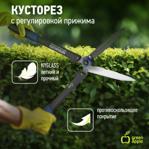Кусторез "Green Apple" предназначен для точного и легкого придания нужной формы кустарникам. Рукоятки из прочного и очень легкого материала NYGLASS позволяют сделать работу приятной и неутомительной.