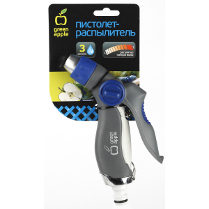 Описание: Пистолет-распылитель "Green Apple" предназначен, в зависимости от режима, для решения различных задач по поливу и проведению очистительных работ. Снабжен регулятором изменения интенсивности струи и фиксатором для длительного полива. Режимы легко и плавно переключаются поворотным регулятором на корпусе. Особенности: 3 режима полива, регулятор напора воды, регулируемая латунная форсунка. Характеристики: корпус из стали, пластика, эргономичная рукоятка. С аксессуарами Green Apple работа в саду всегда в радость!
