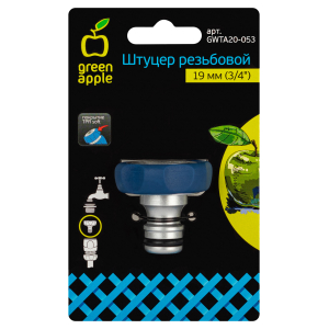 Описание: Штуцер резьбовой GWTA20-053 GREEN APPLE 19мм (3/4) внутренняя резьба, алюминий, TPR. Резьбовой штуцер GREEN APPLE предназначен для соединения шлангов и насадок с кранами, имеющими внешнюю резьбу. Подходит для особо высоких нагрузок. Комплект 2 шт.