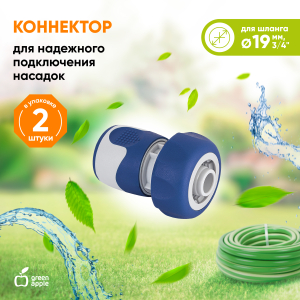 Универсальный коннектор "Green Apple" предназначен для надежного подключения распылителей и других насадок к шлангу. Коннектор совместим со всеми стандартными шлангами диаметром 3/4" (19 мм). Изделие отличается высокой прочностью – оно изготовлено их термопластичной резины и пластика. Это значит, что вам долго не придется уделять внимания улучшению и переобустройству систем полива и орошения. Надежно держится, герметично.
