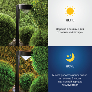 Описание: Уличный светильник ЭРА SL-PL42-DMD придется по душе истинным ценителям дачного уюта. Садовый светильник идеально впишется в любой ландшафтный дизайн. Особенно эффектно он будет смотреться в ночное время, его яркое свечение посреди дачных растений привнесет ощущение таинственности и сказки. Светильник садовый имеет оригинальную изогнутую форму с рифленым прозрачным плафоном, что позволяет создавать точечное освещение растений. Уличный светильник ЭРА работает на солнечных батареях, тем самым создает для растений оптимальную степень освещенности в темное время суток. Конструкция включает сверхъяркий SMD-светодиод мощностью 0,5Вт, что обеспечивает более яркое освещение, чем обычные уличные светильники для загородного дома. Садовые светильники ЭРА легко разместить вдоль дорожек или внутри ландшафтных композиций, они легко крепятся, устойчивы к воздействию дождя и ветра. Обращаем Ваше внимание, что перед использованием фигурки её необходимо включить и зарядить. Светильник заряжается в течение всего светового дня. Уличный светильник на солнечных батареях станет прекрасным подарком всем любителям отдыха на дачном участке.