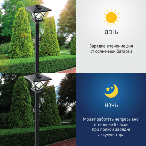 Описание: Садовый светильник SL-PL155-PST станет прекрасным дополнением в оформлении Вашей дачной территории. Фонарь прекрасно подсветит цветы в палисаднике, декоративный пруд, территорию около бассейна или вход в террасу. Модель имеет высоту в 1,5 м и с легкостью вставляется в землю. Садовый светильник работает на солнечной батарее. Такой тип получения энергии является наиболее экологичным, энергоемким, а также бесшумным. Питание происходит во включенном режиме, днем. С наступлением ночи стильная подсветка загорается. 2 светодиода и прозрачный рассеиватель обеспечивают высокий уровень яркости. Два способа крепления светящегося элемента к столбу: подвесной и насадки, позволяют менять расположение в зависимости от настроения. Работа от солнечной батареи рассчитана 8 часов. Высокая степень защиты от пыли и влаги позволяет оставлять светильник на улице даже во время дождя. Подсветка на солнечной батарее от бренда ЭРА прекрасный вариант для преображения Вашего сада.