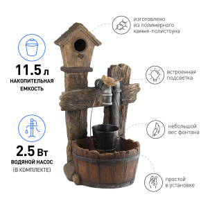 Описание: Садовые фонтаны - отличное решение, если Вы хотите украсить ландшафт участка своего загородного дома, коттеджа или дачи с минимальными затратами сил и средств. В последнее время садовыми фонтанами облагораживают территории не только частных домовладений, но и общественных мест для отдыха: ресторанов, кафе, гостиниц, санаториев, пансионатов, парков, скверов и т. д. Фонтан GWXF02400-S Лесной дом от компании GREEN APPLE преобразит пейзаж Вашего сада и создаст уютную атмосферу! Работает от сети. Не требуется подключение к водопроводу.