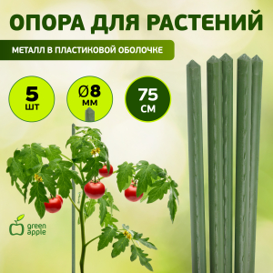 Опора для растений "Green Apple" высотой 75 см выполнена из высококачественного металла, покрытого цветным пластиком - эти материалы безопасны для растений и цветов. В наборе 10 опор, выполненных в виде ствола растения с шипами. Такие опоры широко используются для поддержки декоративных садовых и комнатных растений. Также могут применятся для поддержки вьющихся растений в парниках. Крепкие опоры позволят задать правильное направление роста и вырастить здоровые растения.