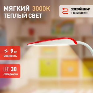 Светильник со светодиодами (LED) в качестве источников света. Теплый свет, аналогичный свету лампы накаливания - цветовая температура 3000К. Сенсорное переключение. Четырехступенчатый диммер для регулировки яркости. Высота плафона регулируется гибкой стойкой, направление света регулируется поворотом плафона в любом направлении. |