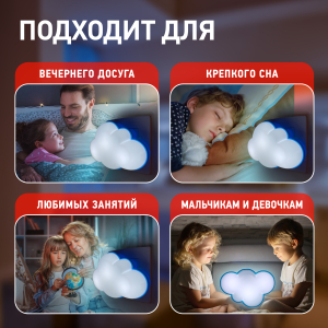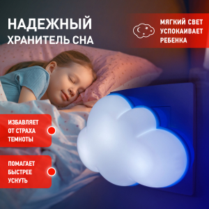 Ночник ЭРА в виде облачка - идеальный подарок для ребенка. Детский светодиодный ночник светильник в розетку с датчиком освещенности ЭРА представлен в 7-ми вариациях: модель NN-605-LS-W – Облачко; модель NN-626-LS-Y – Бычок, модель NN-601-LS-R - Божья коровка; модель NN-607-LS-BU – Воздушный шар; модель NN-603-LS-W – Белый мишка; модель NN-606-LS-W – Клевер; модель NN-631-LS-P – Хрюшка. |