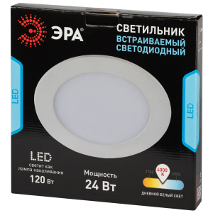Описание: Круглый светодиодный светильник LED 1-24-4K - эффектное решение для любой комнаты в вашем доме! Светодиодный светильник можно использовать как в качестве базового освещения, так и для создания акцентов в определенных зонах комнаты. Благодаря скрытой части корпуса светильники можно встраивать в потолок или стены, создавая разный стиль помещений. Светильник ЭРА с приятным дизайном подойдет для помещений с разным интерьером: от минимализма до хай-тека, прованса или скандинавского стиля. Цветовая температура составляет 4000К, она оптимальна для глаз и не заставляет их испытывать дискомфорт. Максимальная мощность лампы – 24 Вт. Корпус встраиваемого светильника изготовлен из ударопрочного алюминия, что делает его особенно удобным в использовании, а благодаря матовому стеклу, защищающему лампу, свет рассеивается и становится мягким. Диаметр отверстия, требуемого для установки светильника составляет 265 мм, а диаметр самого светильника – 300 мм. Купив точечный светильник бренда ЭРА, вы останетесь довольны и сможете создать приятную атмосферу в доме!