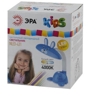 Светильник со светодиодами (LED) в качестве источников света. Теплый белый свет - цветовая температура 4000К. Удобная подставка на основании поможет всегда иметь ручку, карандаши или линейку под рукой. Выключатель на основании. Детский дизайн в виде зайчика. Гибкая стойка - наклон и поворот плафона в любом направлении. |