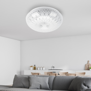 Отдельного внимания заслуживает плафон электросветильника. Он декорирован "волшебным" узором. Плавные линии образуют сеть с узорчатыми вкраплениями, соединяясь в центре. Мелкие звезды, разбросанные по окружности рассеивателя, придают ему волшебства. Такой светильник идеально подойдет для оформления детской, гостиной или спальни.