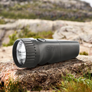Благодаря особой конструкции корпуса с плавными углублениями для пальцев фонарь удобно держать в руке. Кнопка включения удобно расположена прямо под большим пальцем. |