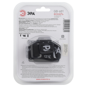 ЭРА GB-601 - светодиодный налобный фонарь с тремя режимами работы и адаптивным углом наклона. Работает от 3 мизинчиковых батареек (3 х ААА), одного комплекта элементов питания хватает на 8 часов непрерывного использования.