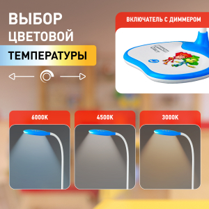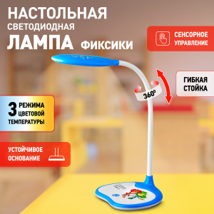 Дизайн светильника и упаковка в тематике мультсериала Фиксики. Светильник со светодиодами (LED) в качестве источников света. Выбор цветовой температуры - 3 цвета: 3000К, 4500К, 6000К. Сенсорное переключение. Плавный диммер для регулировки яркости. Наклон и поворот плафона в любом направлении. |