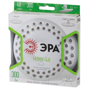 Светодиодный кемпинговый фонарь в футуристичном дизайне, специально разработанном компанией ЭРА. Фонарь предназначен для активного отдыха, отдыха на природе, для пикников, дачи. Дизайн фонаря функционален. 48 мощных светодиодов расположены по кругу таким образом, чтобы освещать максимально большую площадь ярким белым. Светодиоды энергоэкономичны, не перегорают и не требуют замены. Посередине фонаря предусмотрено отверстие, если надеть фонарь на любую подставку, например, на бутылку, получится настольный светильник. Фонарь оснащён мощным магнитом, так что его легко приклеить к металлической поверхности.