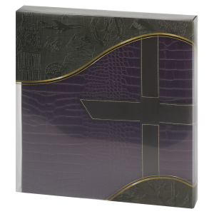 Обложка из плотного картона с обложкой из PVC с вышивкой . Внутри содержится блок из 50 чёрных листов. Альбом рассчитан на 500 фотографий форматом 15 см х 10 см. На каждой странице с фиксатором-окошком из полипропилена можно разместить по 5 фотографии. Переплет книжный.