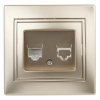 Описание: Розетка RJ11 серии Intro Plano скрытой установки цвет шампань 1-302-04. Номинальные характеристики . Розетка выполнена из термопласта, укомплектована одноместной рамкой. Для установки 2-х и более устройств в несколько подрозетников в ряд дополнительно используются многоместные рамки: 2-х постовая - 1-502-хх, 3-х постовая 1-503-хх, 4-х постовая - 1-504-хх (где хх - цветовой код: 01 - белый, 02 - слоновая кость, 03 - алюминий, 04 - шампань, 05 - антрацит, 10 - венге, 11 - сосна).