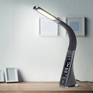 Настольный светильник со светодиодами (LED) в качестве источников света в дизайне под кожу . Нейтральный белый свет - цветовая температура 4000К. Сенсорное переключение. Трехступенчатый диммер для регулировки яркости. ЖК дисплей с функциями часов, будильника, календаря и термометра. Выбор яркости дисплея с возможностью его выключения. |