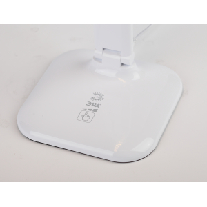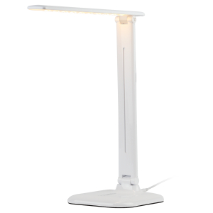 Настольный светильник со светодиодами (LED) в качестве источников света. Теплый свет, аналогичный свету лампы накаливания - цветовая температура 3000К. Сенсорный переключатель на основании. Трехступенчатый диммер для регулировки яркости. Складная конструкция. |