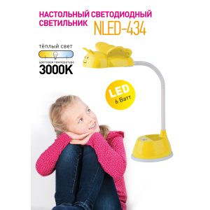 Светильник со светодиодами (LED) в качестве источников света. Направление света регулируется поворотом плафона в любом направлении под любым углом. Теплый свет, аналогичный свету лампы накаливания - цветовая температура 3000К. Удобная подставка на основании поможет всегда иметь ручку, карандаши или линейку под рукой. Детский дизайн плафона в виде пчелки. |