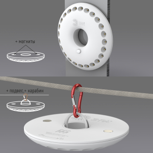 Описание: Фонарь собственного дизайна ЭРА, ставший одной из самых популярных туристических моделей. Получил народные названия "НЛО" или "Летающая тарелка" за круглую форму корпуса и футуристический внешний вид. Фонари ЭРА К24 и их блистерная упаковка производятся в России. 24 светодиода эргономично расположены на корпусе в круговом формате. Не перегорают, не требуют замены, разумно расходуют заряд и дают яркое освещение. Особое преимущество и настоящая "фишка" ЭРА К24 - в секретах эксплуатации. Фонарь закрепляется при помощи специального кронштейна (подвес + карабин), превращаясь в яркую походную "люстру". Для металлических поверхностей в тыльную сторону корпуса вмонтированы магниты. Но самый простой способ использования - закрепить на горлышке бутылки. Тогда это уже импровизированный настольный светильник. Надёжный помощник в походе, на охоте, рыбалке, загородном отдыхе. Набирают популярность и нестандартные способы применения ЭРА К24 - его используют как бюджетный вариант кольцевой подсветки при портретных фотосъемках. Сделано в России.