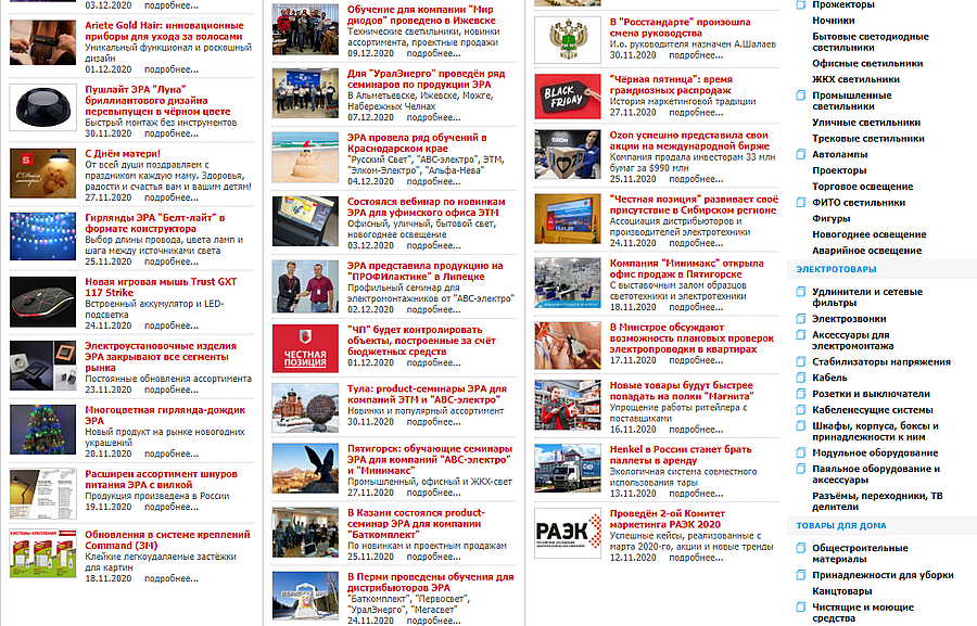 Из новостного раздела "Партнёры" можно узнать о продуктовых обучениях для наших партнёров в разных регионах России, об открытии новых крупных магазинов светотехники и электротехники, увидеть фотоотчёты с различных профильных мероприятиях. Свежие новости появляются регулярно. Приятного просмотра!