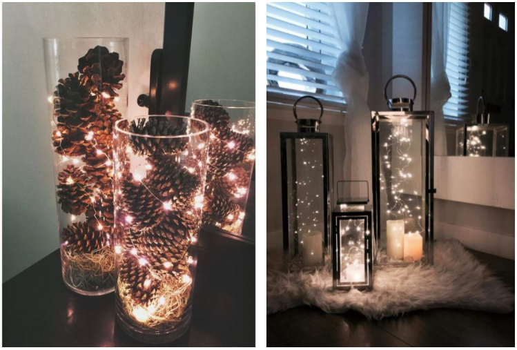 Гирлянды с лампочками-каплями отлично подходят в качестве источников света в декоративных фонарях.