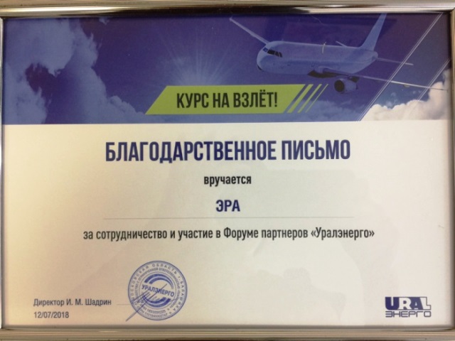 ЭРА - победитель в номинации "Креативные решения" форума партнёров "Уралэнерго"