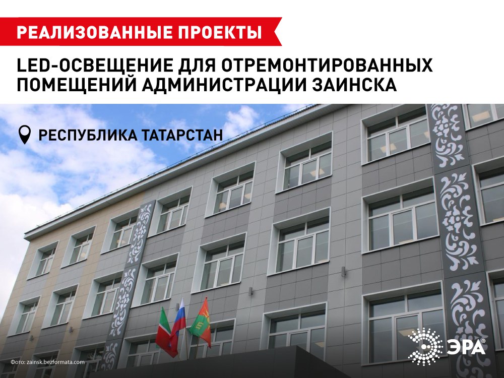 В Республике Татарстан завершён капитальный ремонт здания администрации Заинского муниципального района, где установлено современное LED-освещение ЭРА.