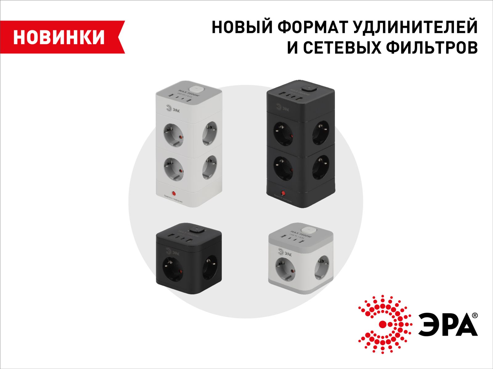 Новые форматы удлинителей и сетевых фильтров ЭРА — куб и башня