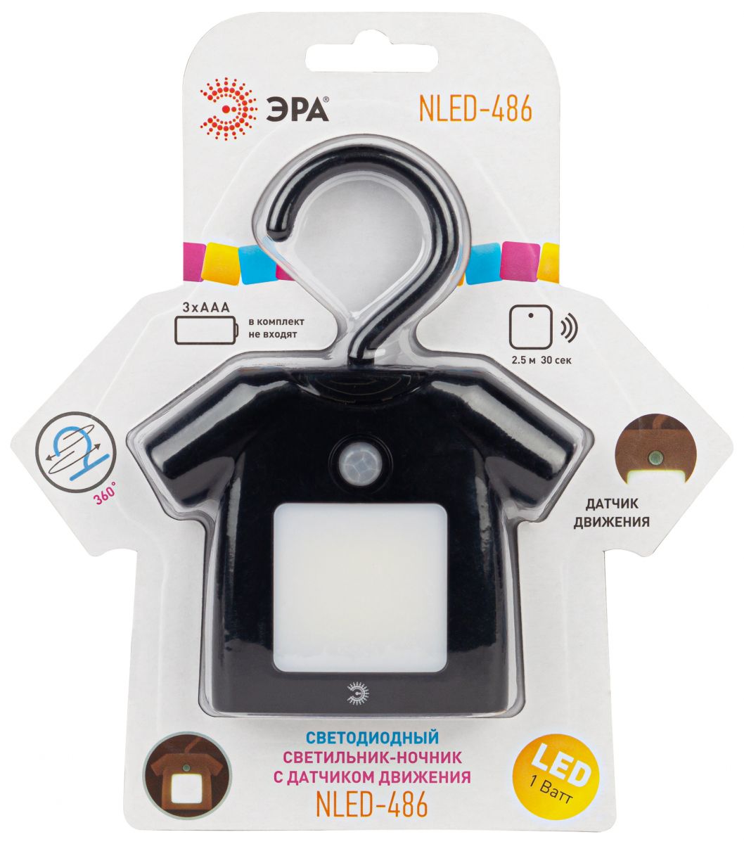 Модель ЭРА NLED-486-1W-MS-BK оснащена датчиком движения, который автоматически включает подсветку при движении в зоне 2,5 м. Выключается самостоятельно через 30 секунд после окончания движения. Светильник с датчиком движения выпускается в черном цвете. Ночники без датчика - в белом NLED-485-1W-SW-W и голубом NLED-485-1W-SW-BU цветах.